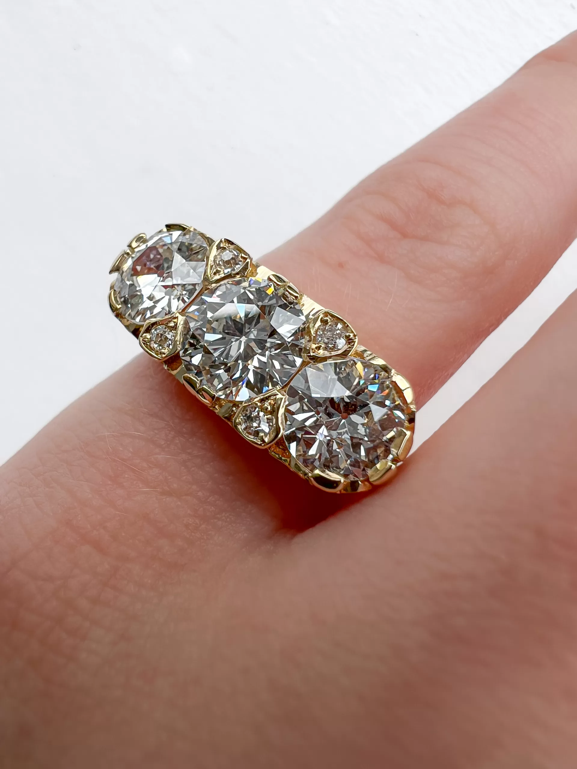 Old Cut Diamond Custom Three Stone Engagement Ring