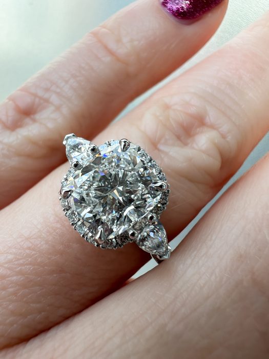 Platinum Cushion Cut Bespoke Halo Ring » J5091 – Hand