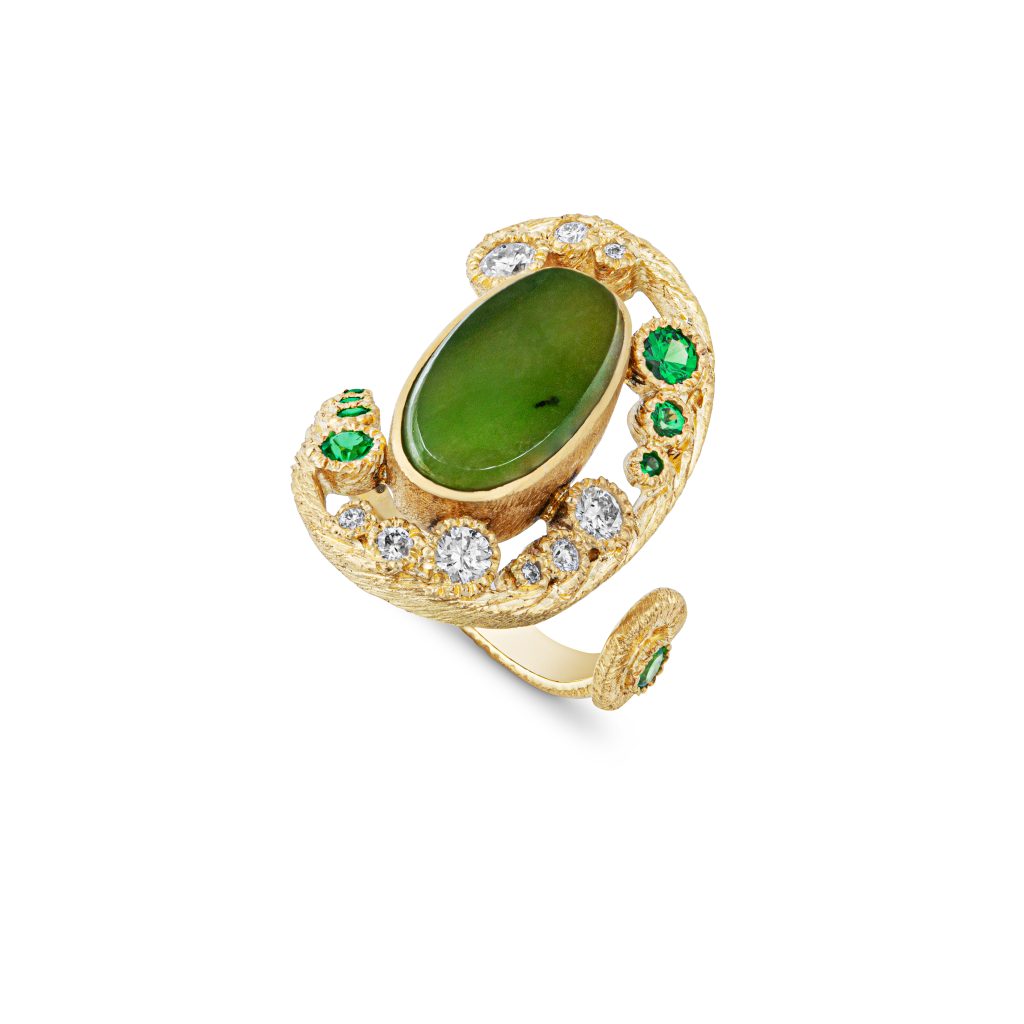 As lifelong fans of Ramshaw’s work, we were incredibly excited to have featured a rare set of her iconic stacking rings in our first Jewellery Box Collection. A stack of six rings with shimmering moonstones and amethyst cabochons in her signature style, the set also included the original Perspex stand – a trademark of Ramshaw’s designs.